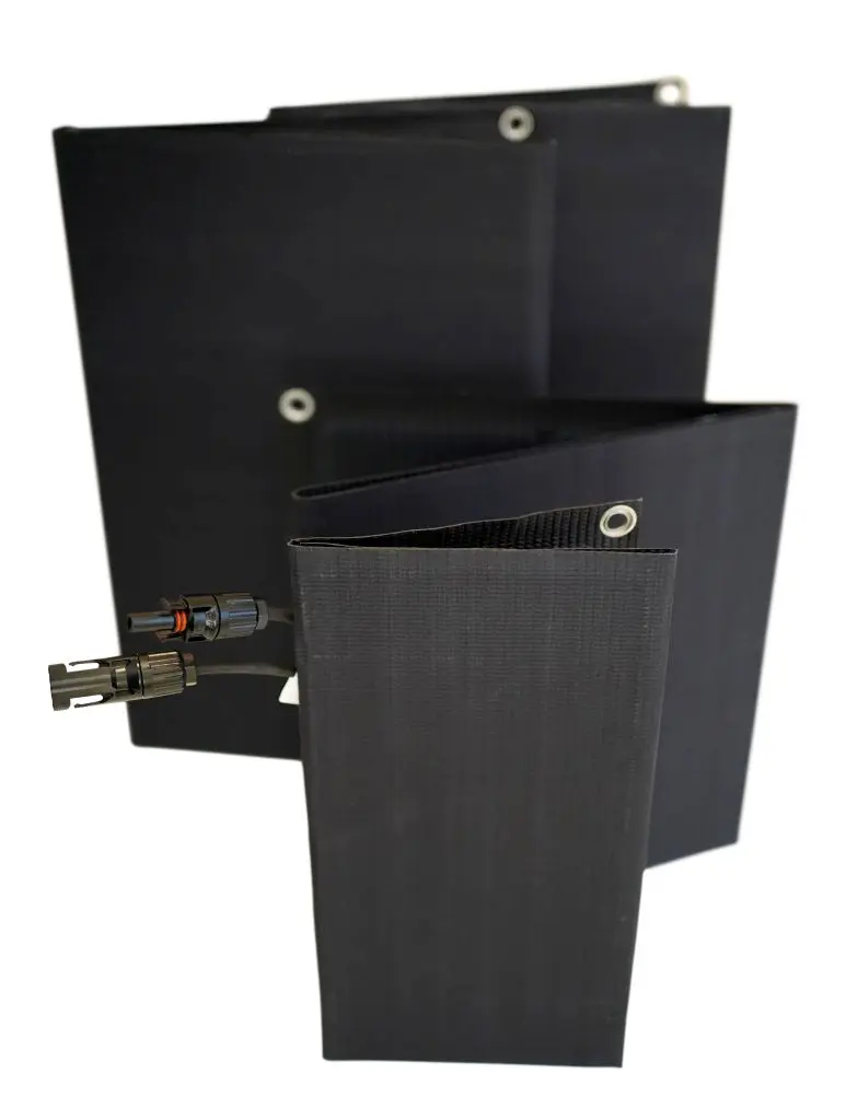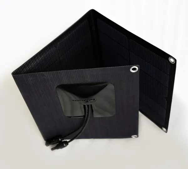 Lightweight 41W foldable solar panel using high-efficiency SunPower cells. Perfect for mobile use on boats or camping trips.